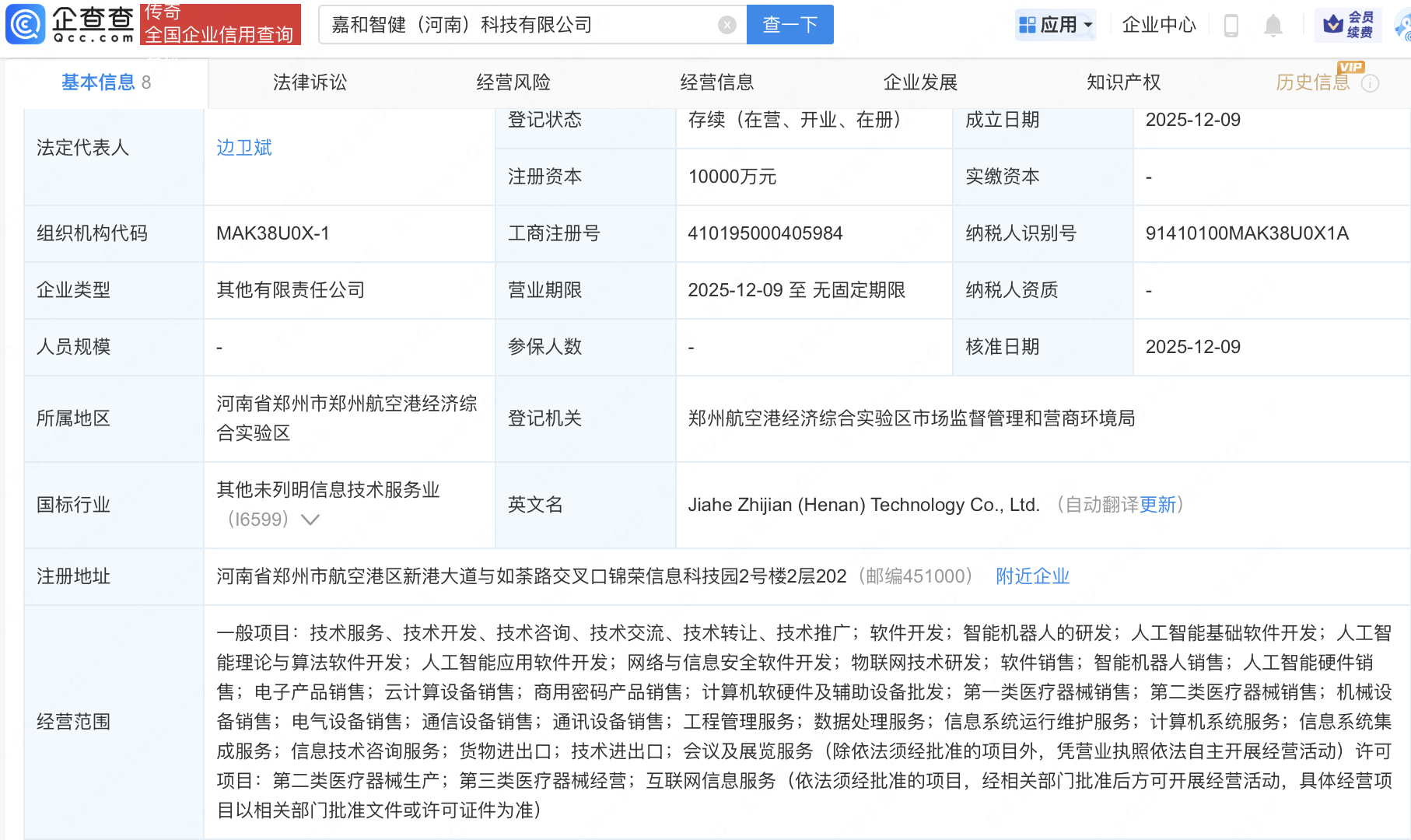 近日,嘉和智健(河南)科技有限公司成立,注册资本1亿元,经营范围包含:智能机器人的研发;人工智能基础软件开发;人工智能理论与算法软件开发;人工智能应用软件开发等。企查查股权穿透显示安全杠杆炒股,该公司由嘉和美康(688246)、北京星动纪元科技有限公司等共同持股。